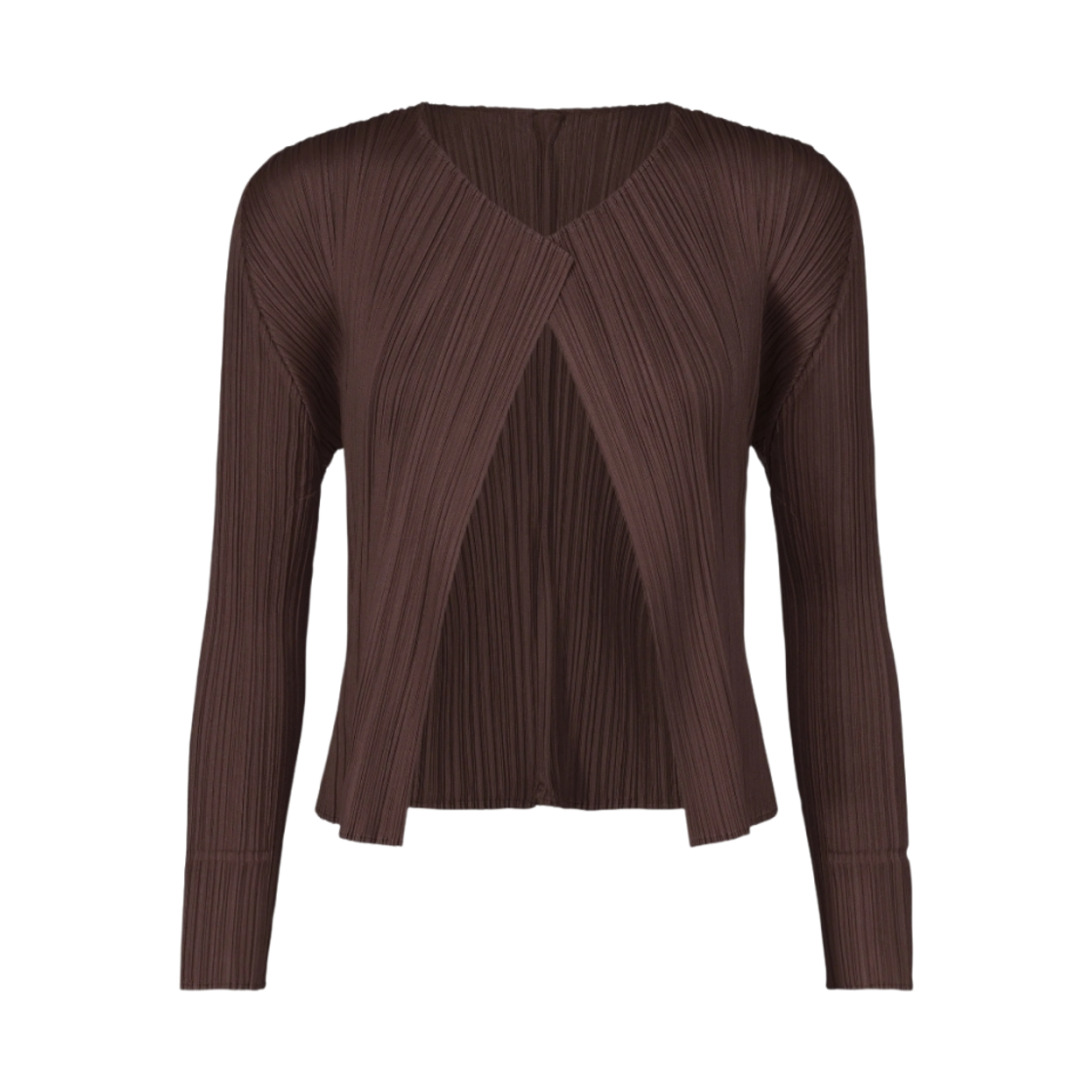 (W) 플리츠 플리즈 이세이 미야케 멜로우 플리츠 가디건 다크 브라운