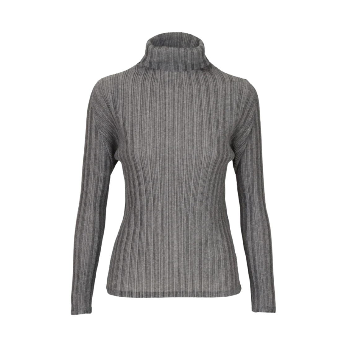 (W) 플리츠 플리즈 이세이 미야케 립 플리츠 하이넥 탑 그레이