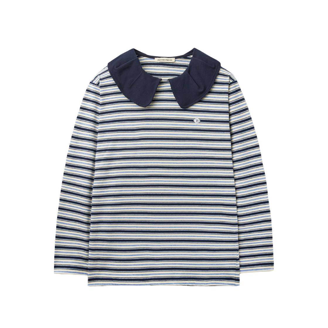 피브스 피브스 스트라이프 빅 카라 탑 네이비