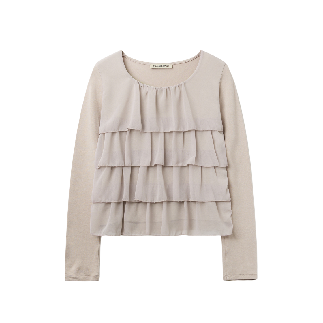 피브스 피브스 티어드 러플 롱 슬리브 탑 베이지