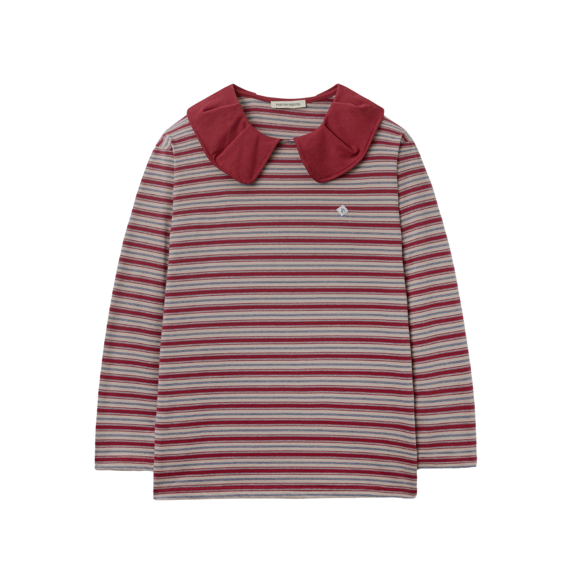 피브스 피브스 스트라이프 빅 카라 탑 버건디