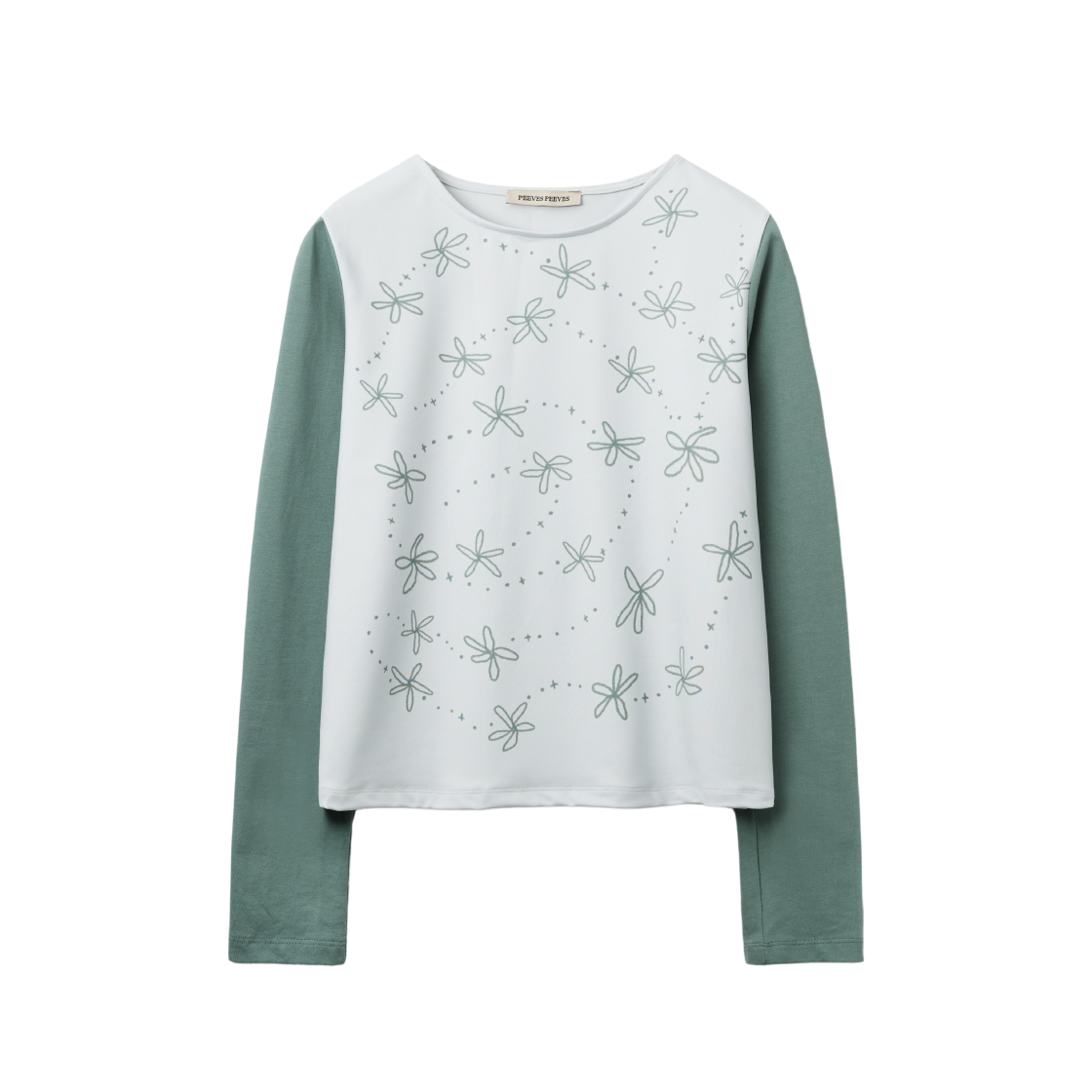 피브스 피브스 핸드 라이팅 플라워 롱 슬리브 탑 그린