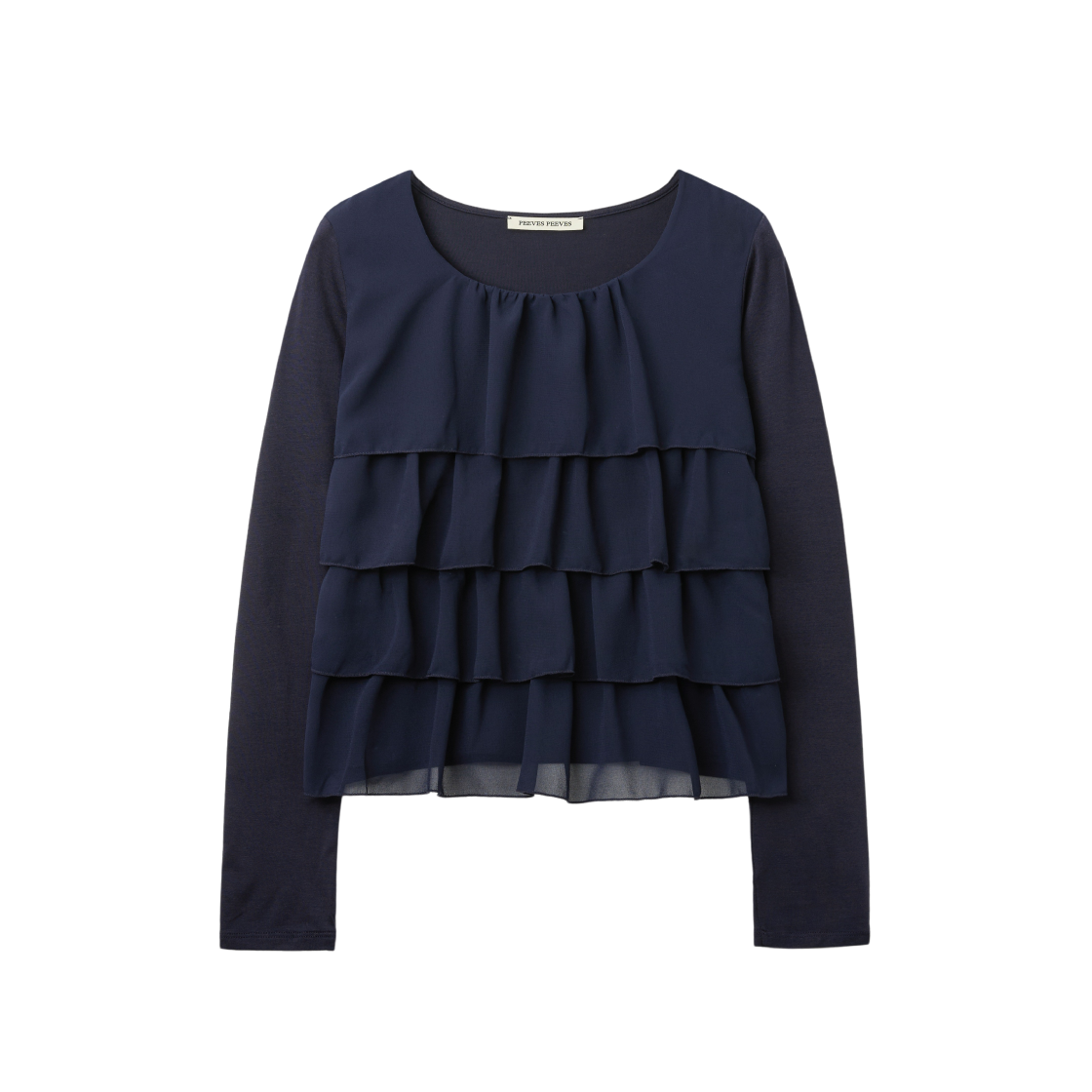 피브스 피브스 티어드 러플 롱 슬리브 탑 네이비