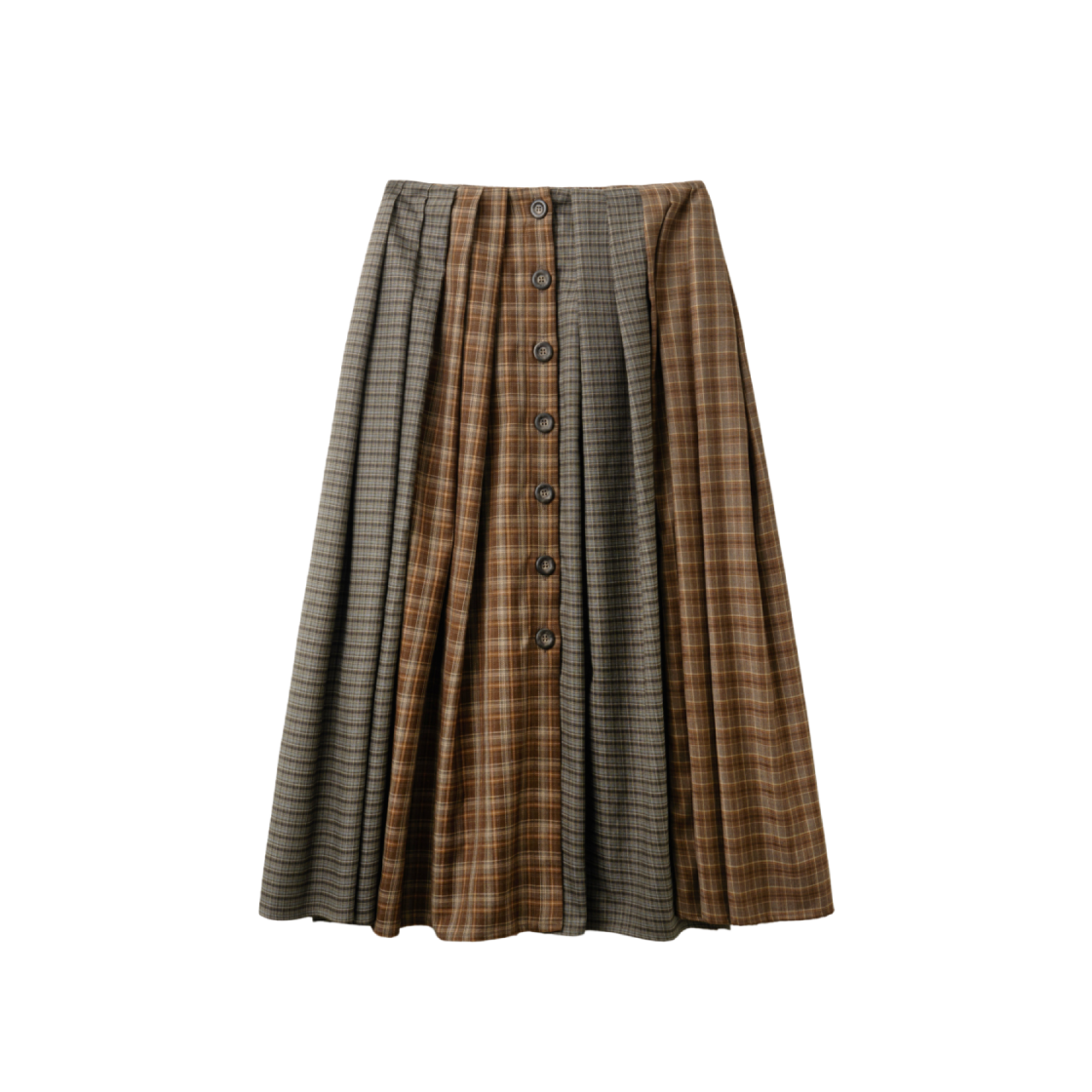 피브스 피브스 믹스 체크 맥시 스커트 브라운