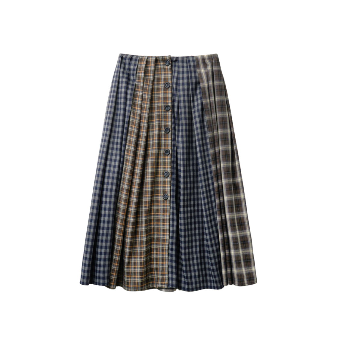 피브스 피브스 믹스 체크 맥시 스커트 네이비