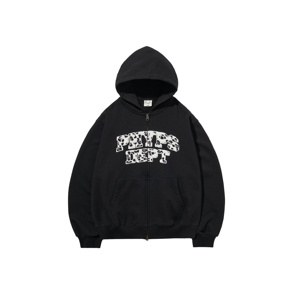 피지컬 디파트먼트 레오파드 로고 후드 집업 블랙