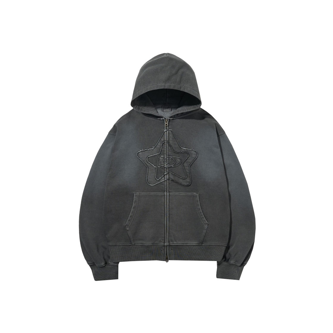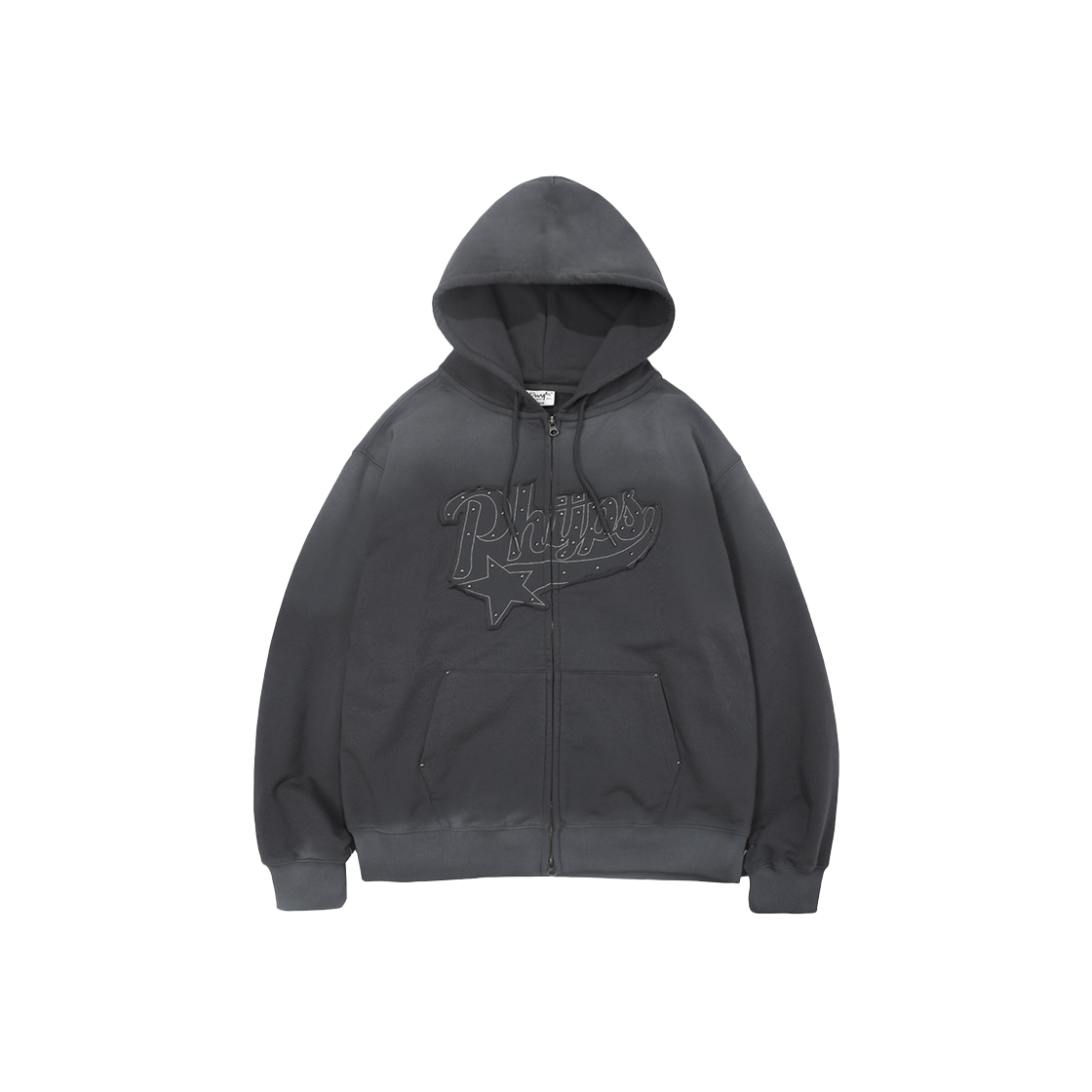피지컬 디파트먼트 아플리케 스타 오브제 피그먼트 후드집업_다크 차콜