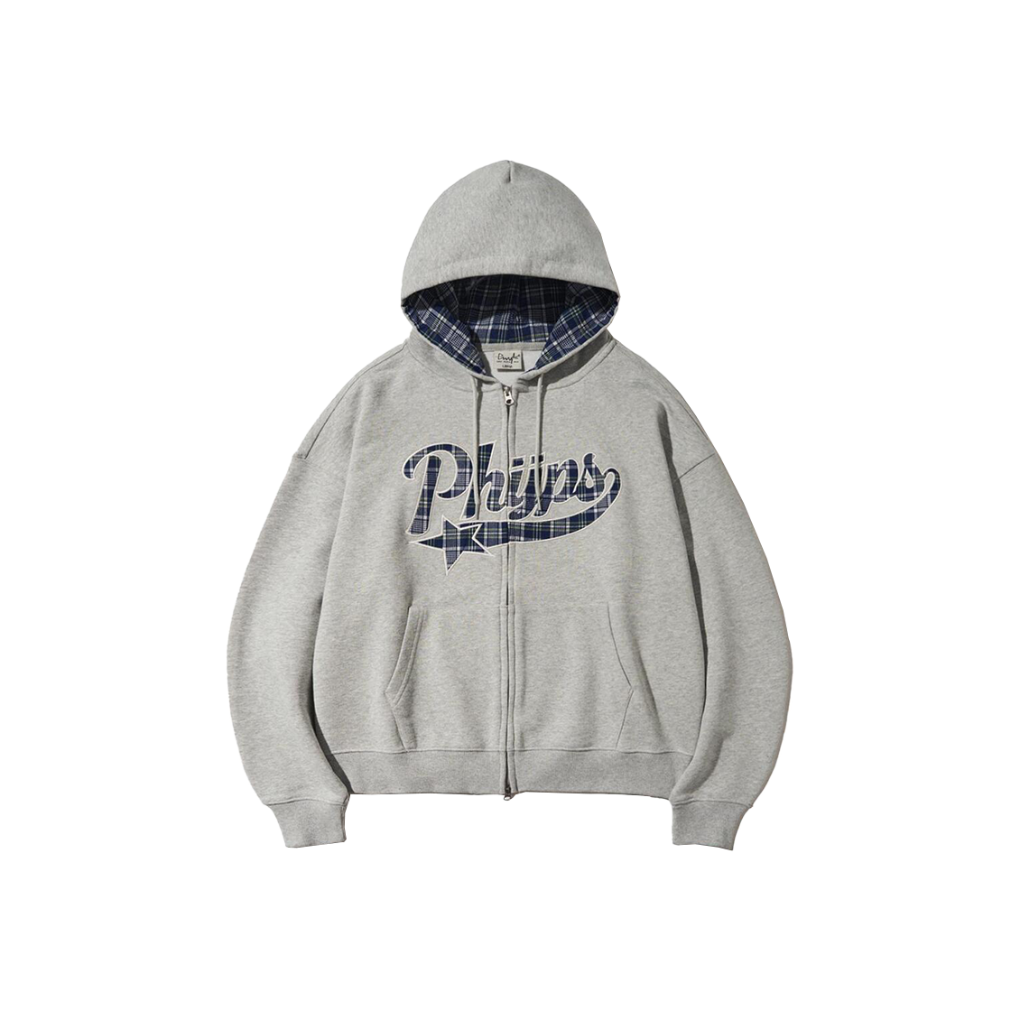 피지컬 디파트먼트 체크 스타테일 엘보우 패치 후드집업 그레이