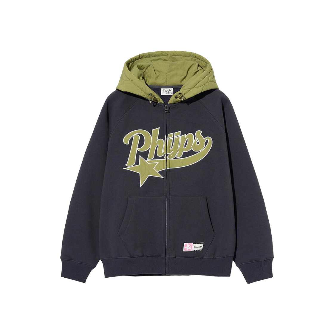 피지컬 디파트먼트 스터드 스타테일 아플리케 후드집업_다잉 차콜