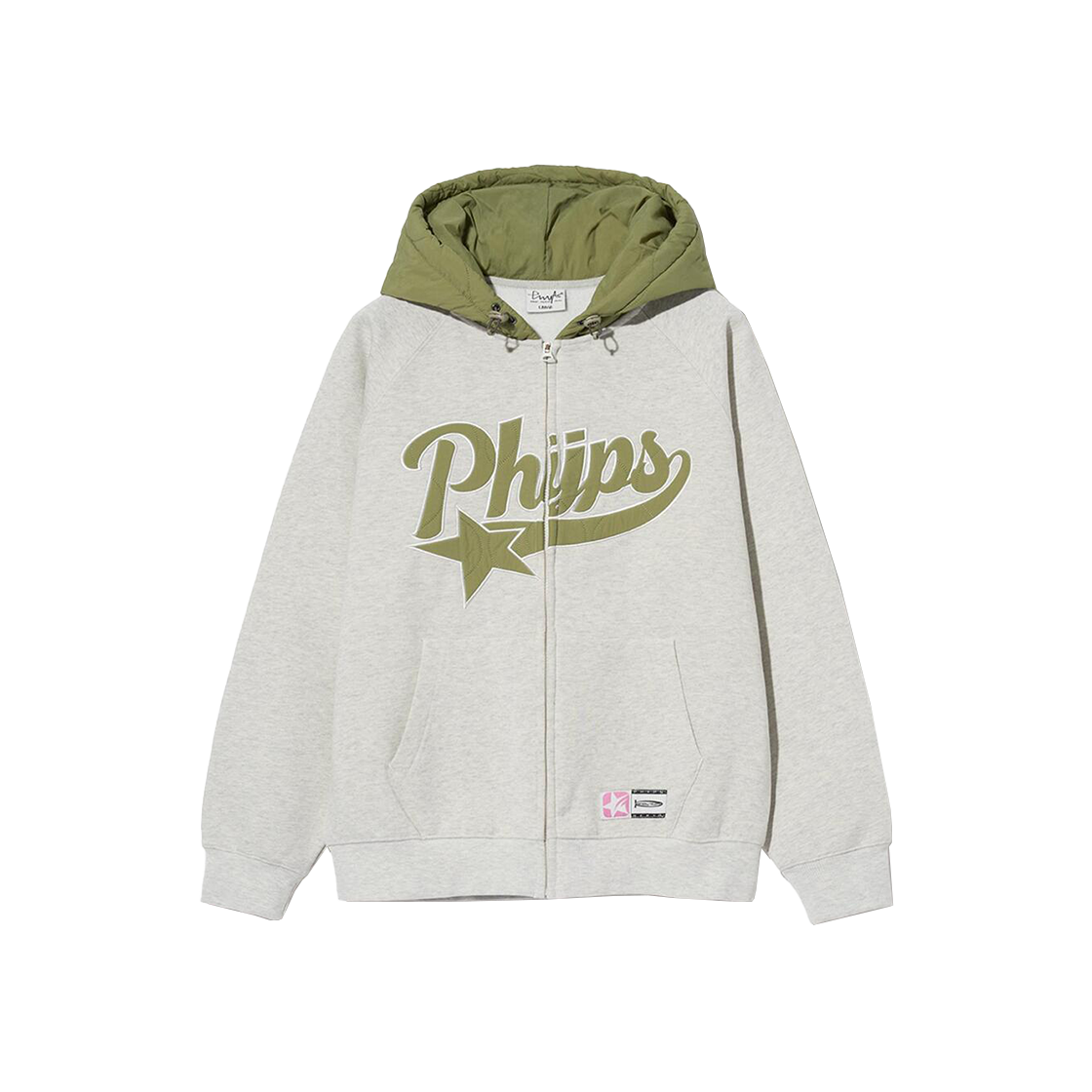 피지컬 디파트먼트 스타테일 컬러블럭 후드집업_그린 베이지