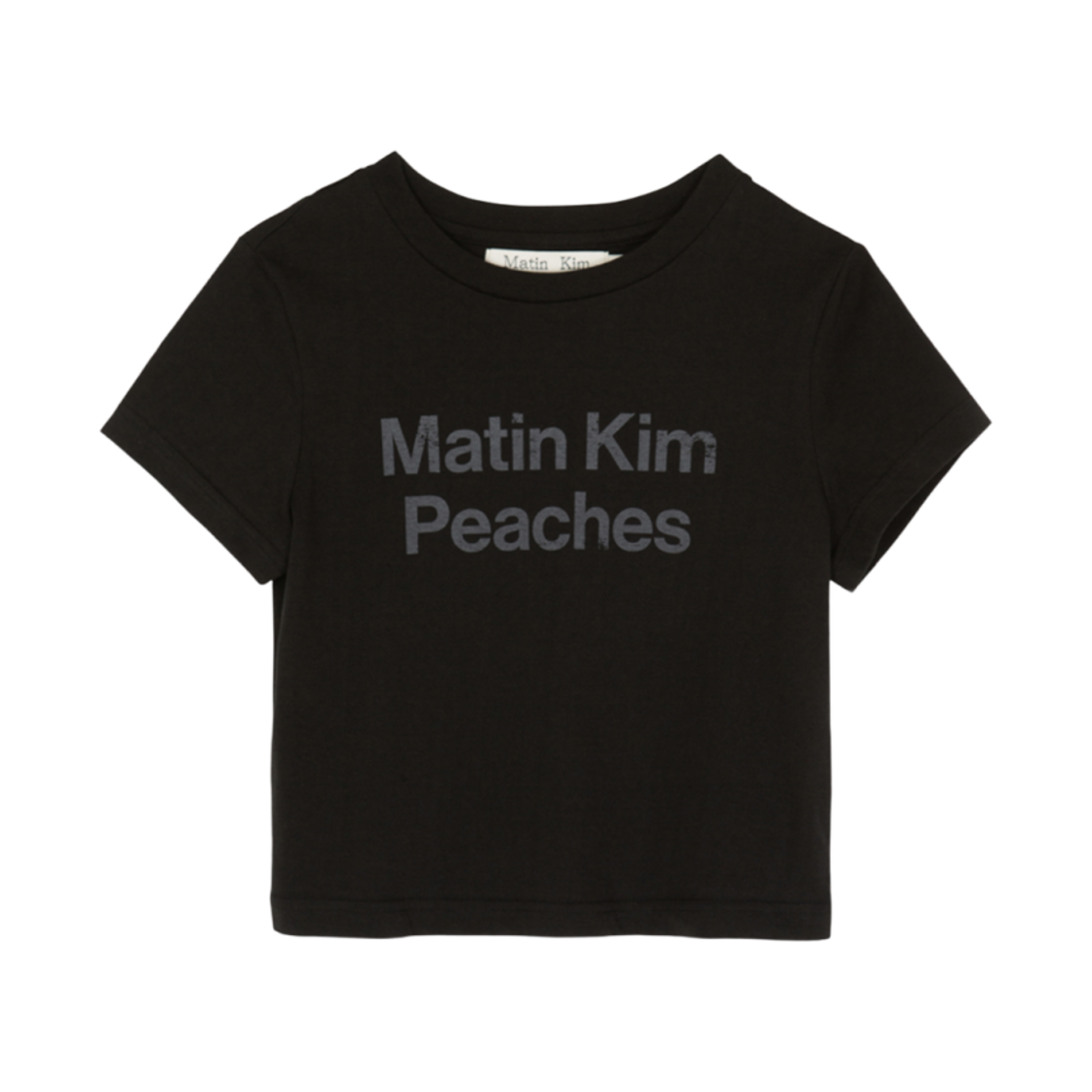 (W) 마뗑킴 x 피치스 로고 그래픽 크롭 탑 블랙