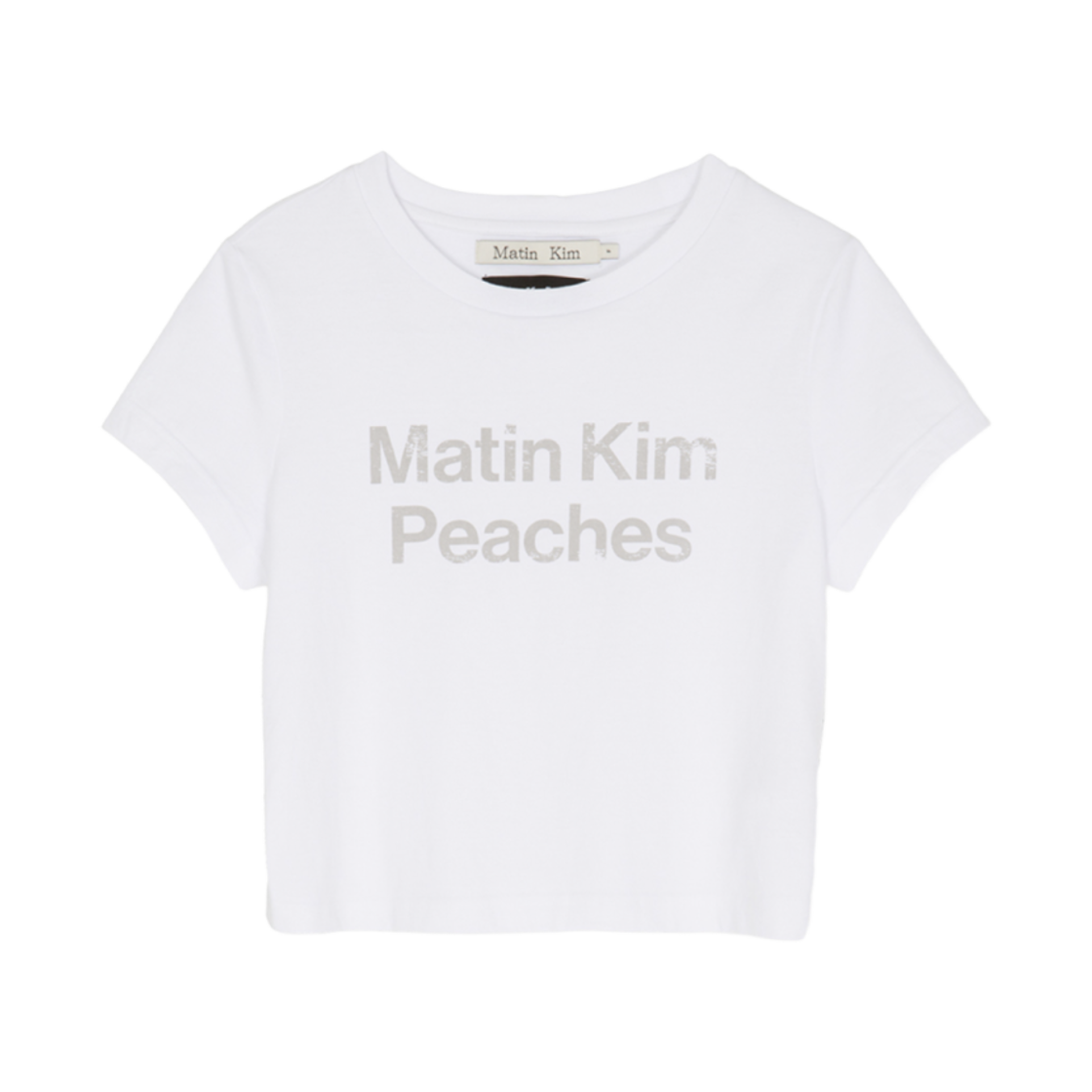 (W) 마뗑킴 x 피치스 로고 그래픽 크롭 탑 화이트