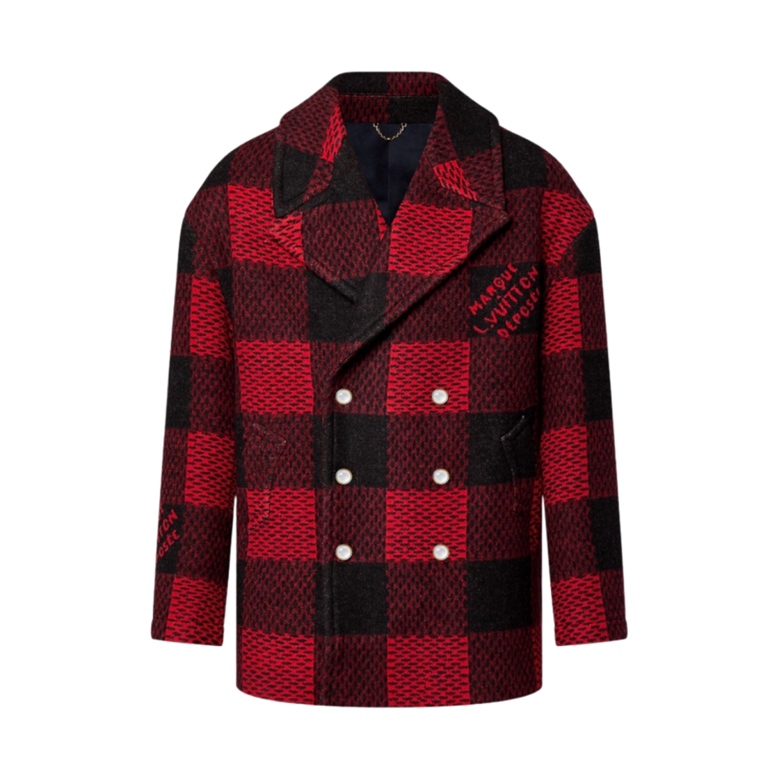 루이비통 타탄 실크 캐시미어 앤드 울 블렌드 피코트 레드