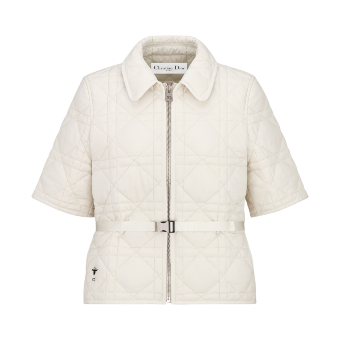 (W) 디올 퀼티드 테크니컬 태피터 매크로까나쥬 숏슬리브 피코트 에크루