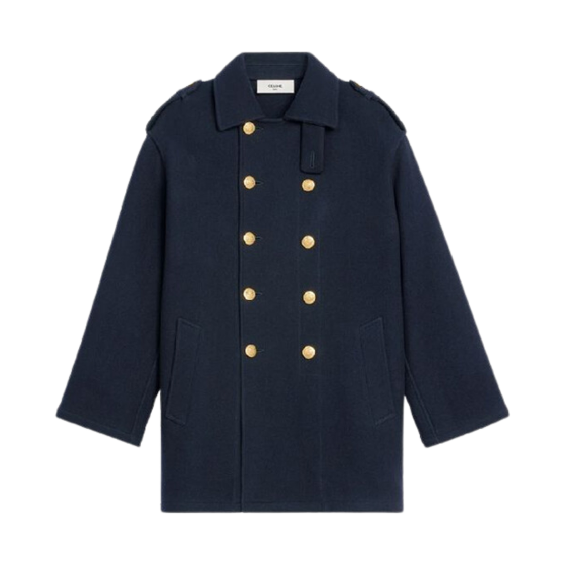 (W) 디올 피코트 네이비 블루 더블 사이디드 울 오블리크 인테리어