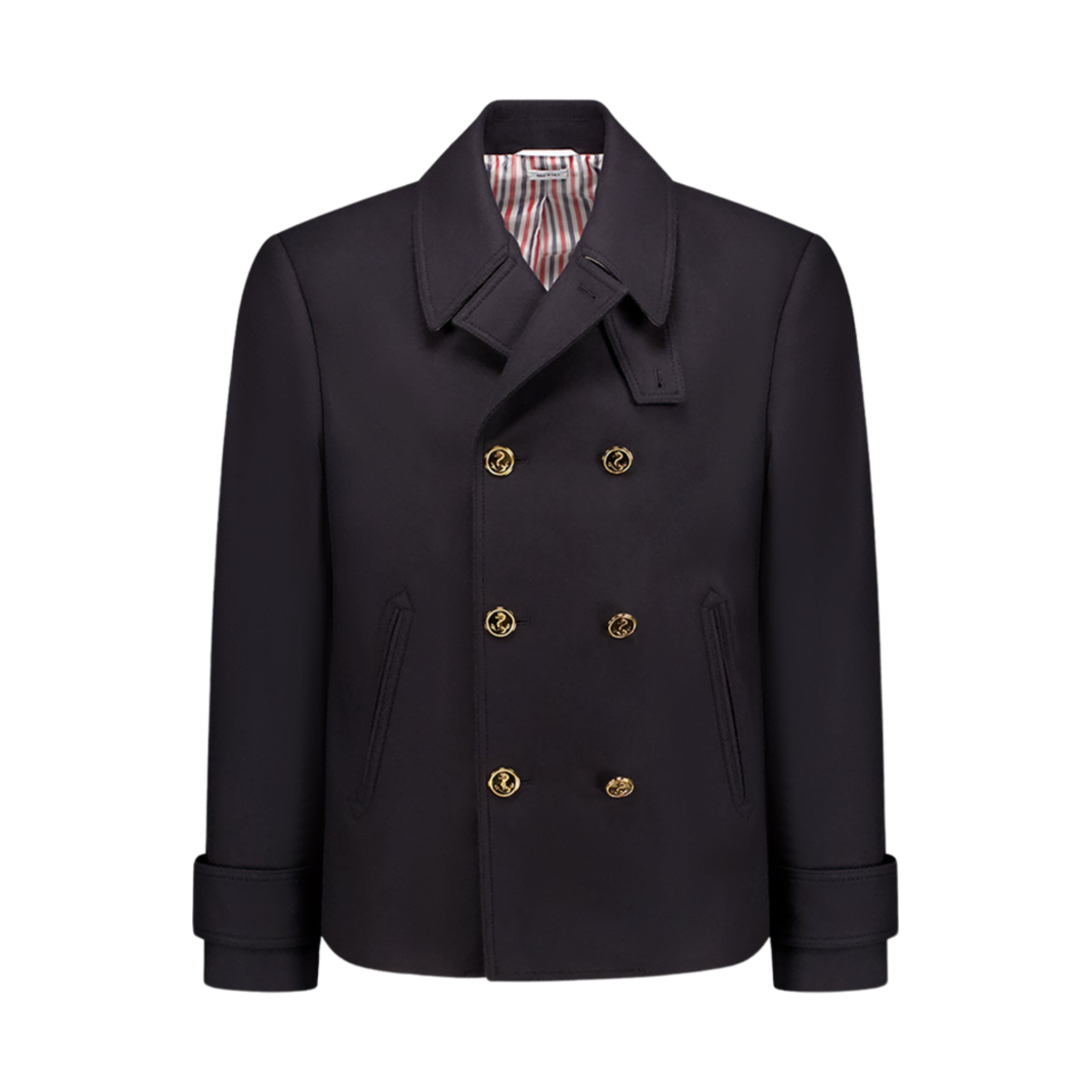 톰브라운 스프링 웨이트 멜튼 울 피코트 네이비