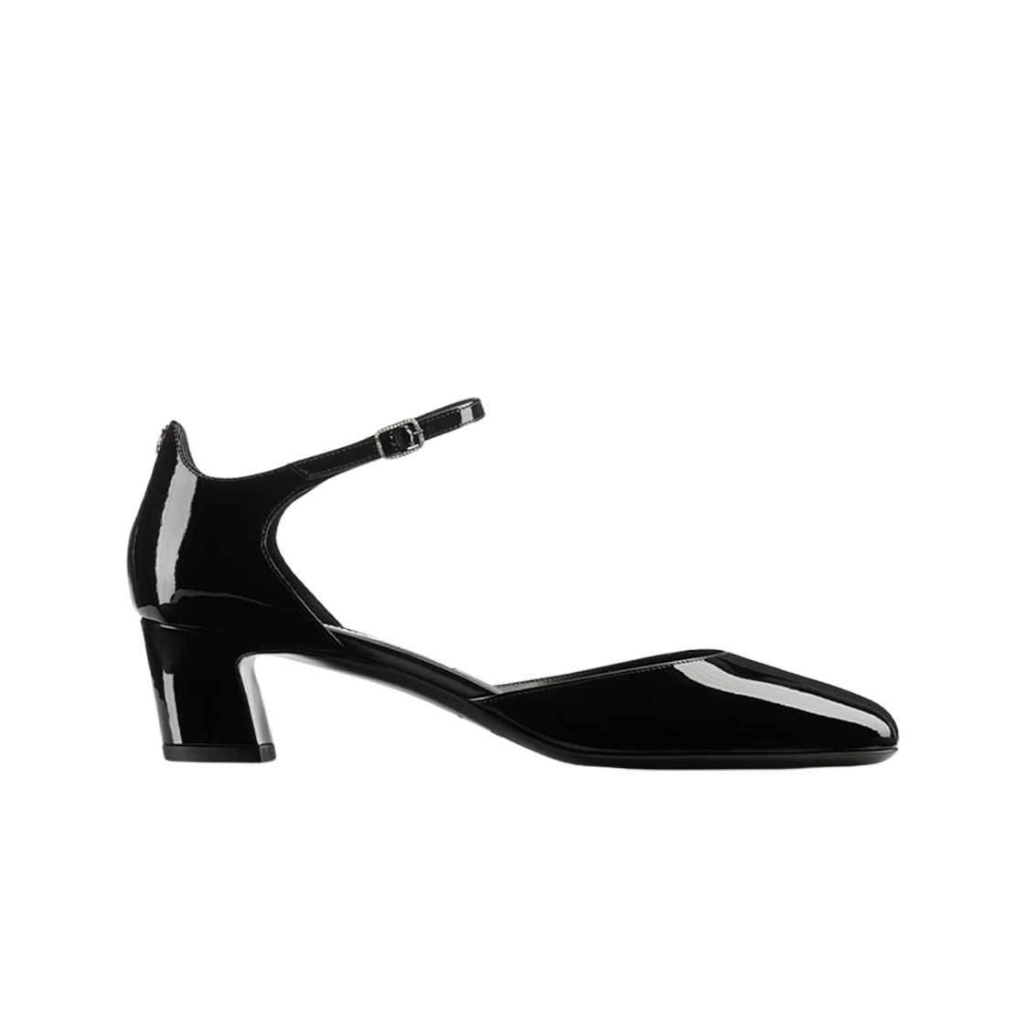 (W) 지미추 픽시 블록 힐 45 페이턴트 레더 펌프스 블랙 크리스탈