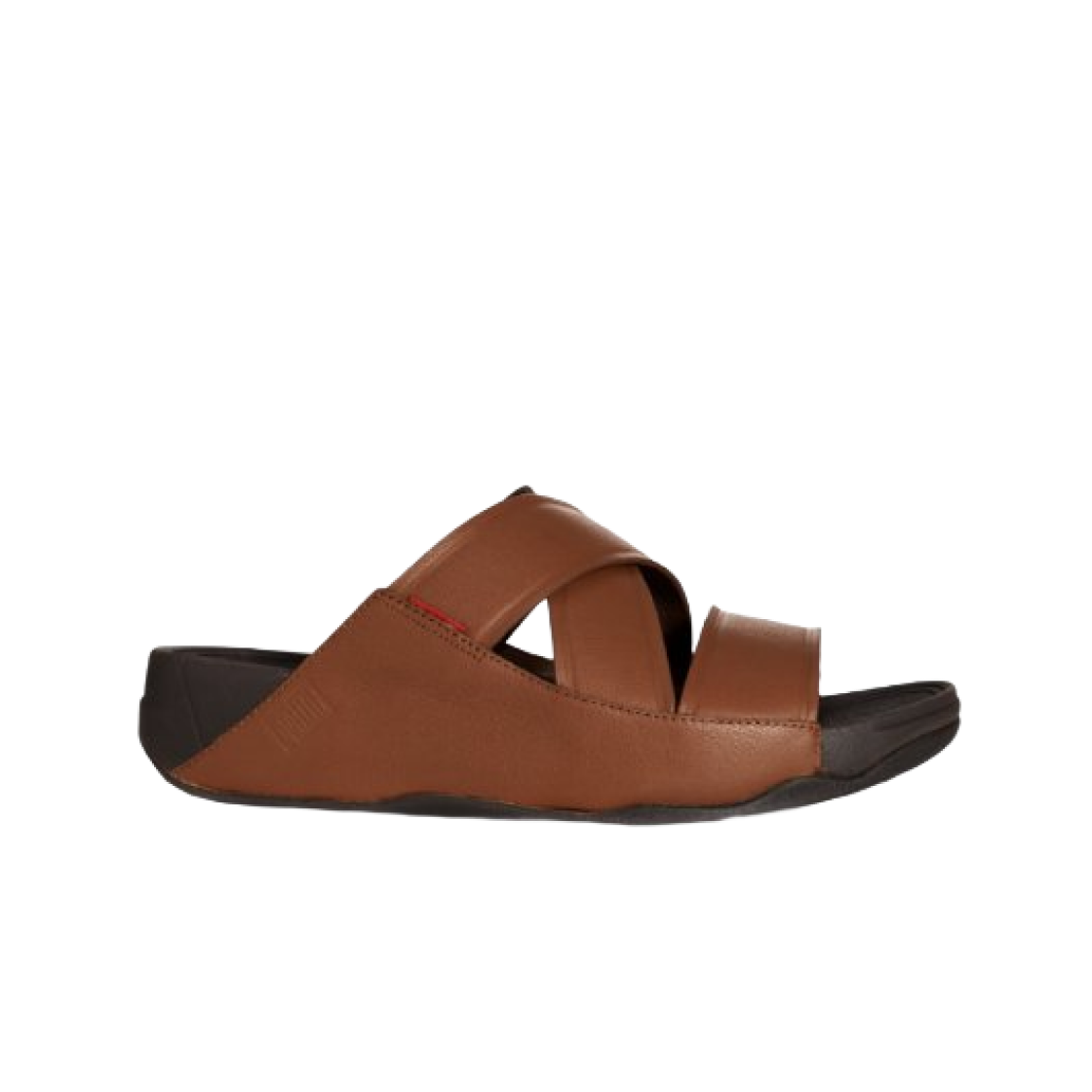 핏플랍 아이쿠션 레더 크로스 슬라이드 브라운 믹스