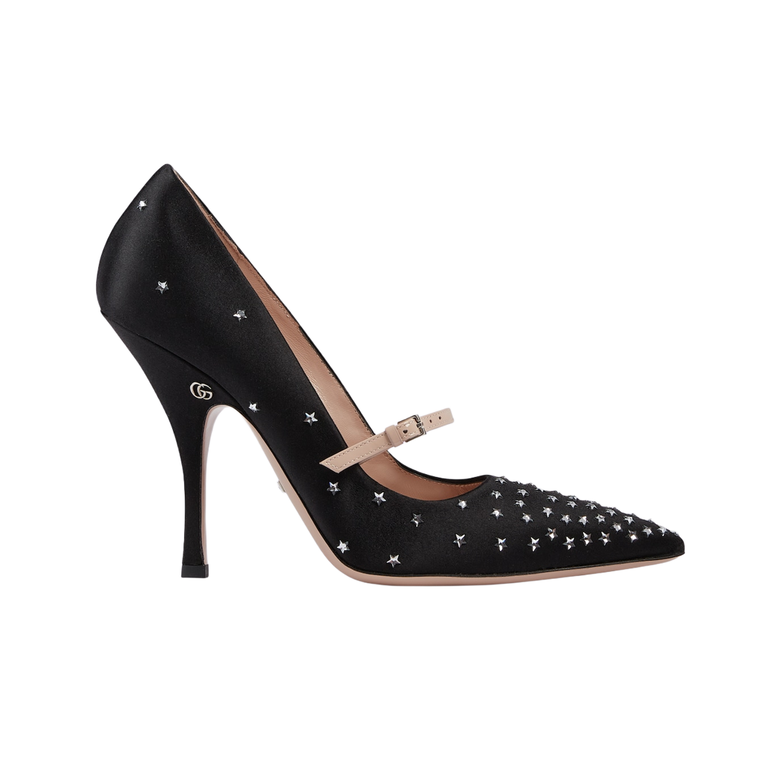 (W) 구찌 하이힐 펌프 스타 블랙 실크 사틴
