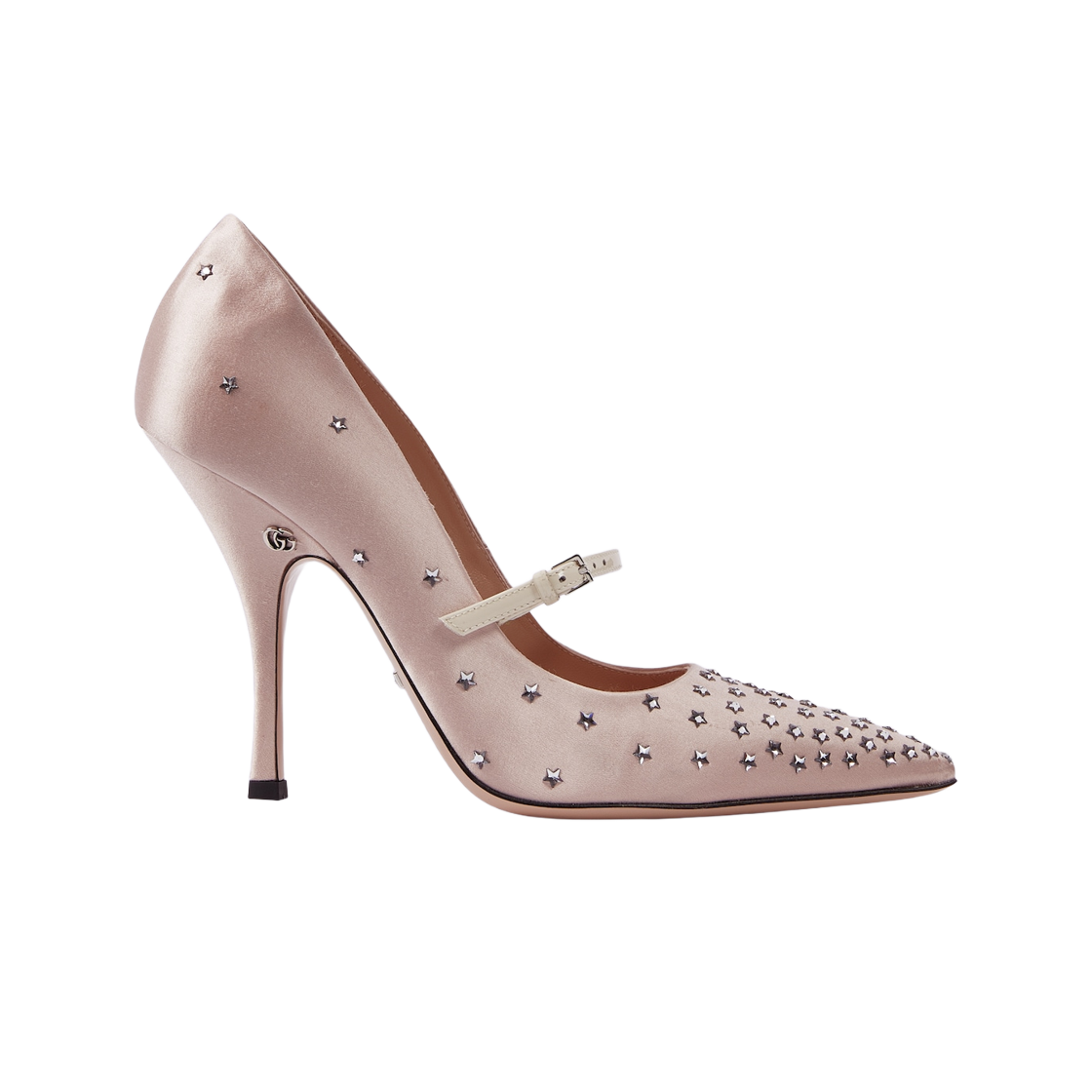 (W) 구찌 하이힐 펌프 스타 파우더 핑크 실크 사틴