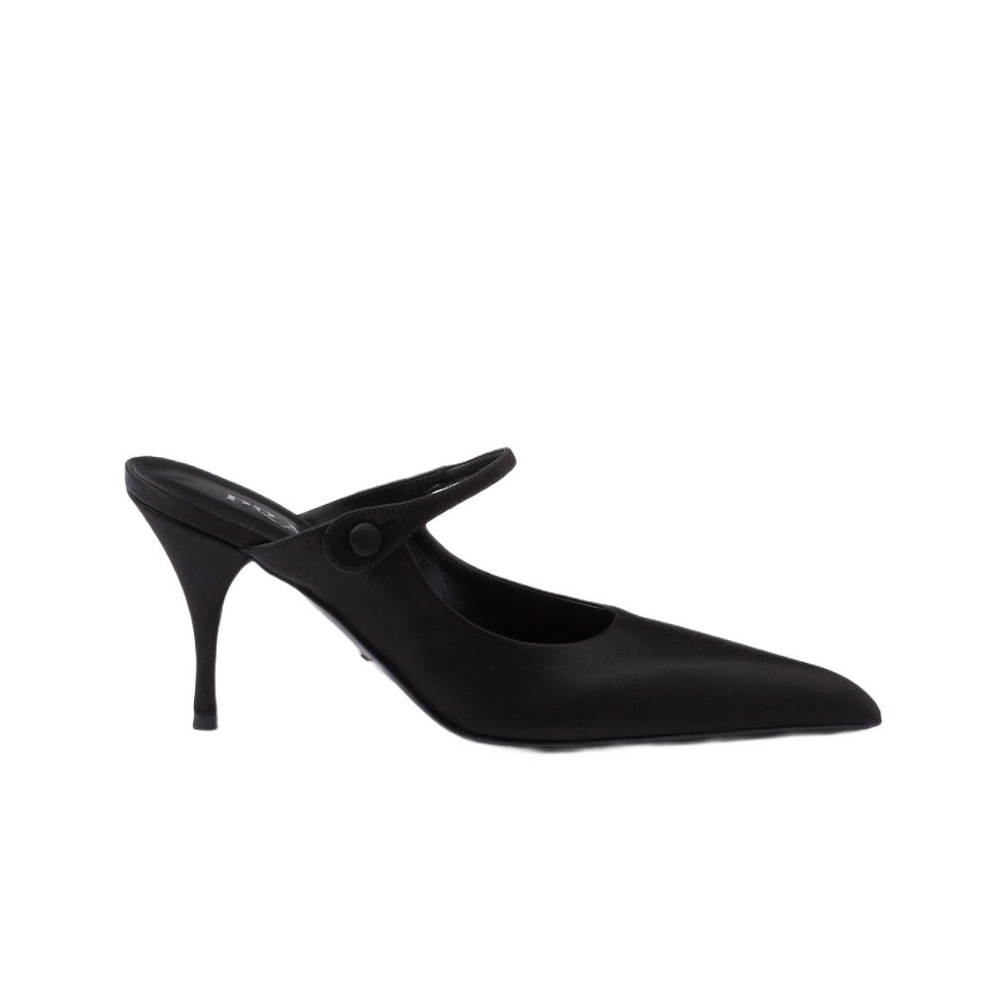 (W) 프라다 사틴 하이힐 뮬 블랙