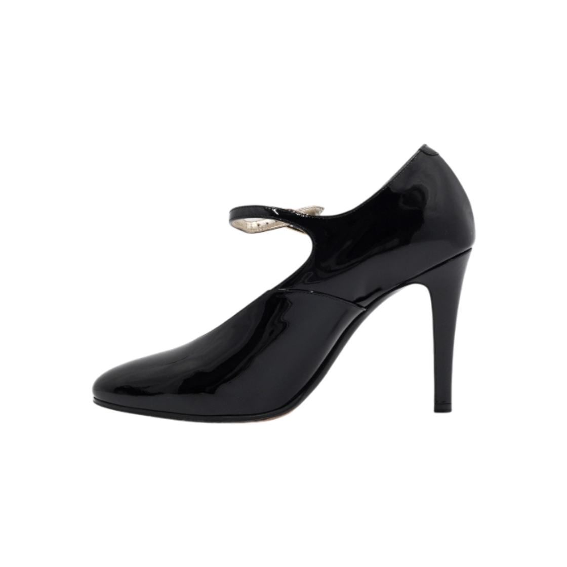 [미사용]샤넬 G33056 블랙 페이던트 금장 CC로고 여성 하이힐 구두aa56882
