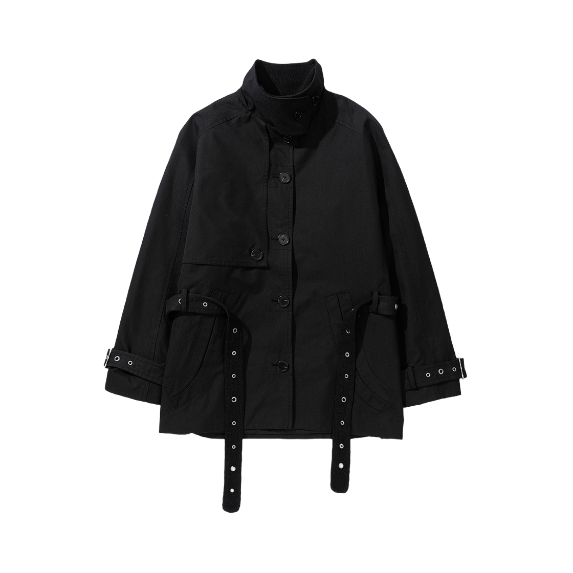 커렌트 세미오버 핏 하프 벨트 코트 블랙