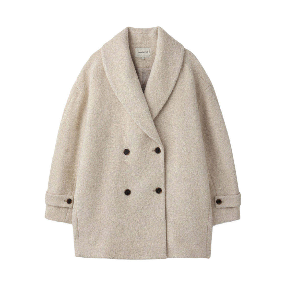 우마뭉 울 알파카 숄 칼라 하프 코트_크림