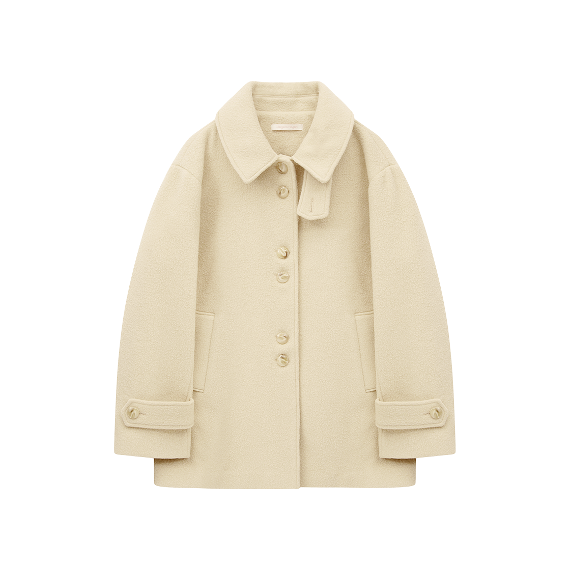 비뮤즈맨션 라글란 부클 하프 코트 버터 베이지