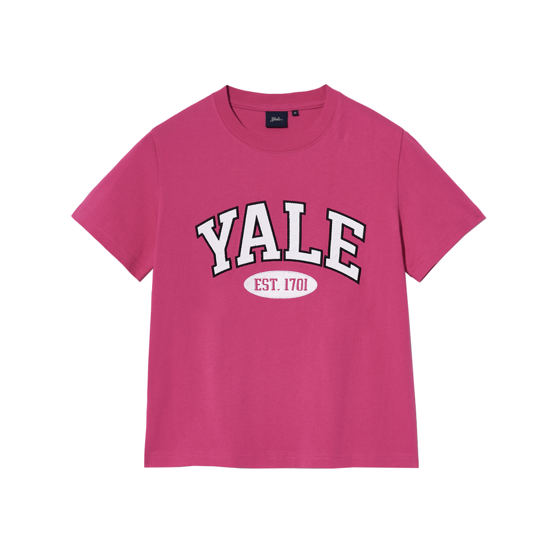 예일 우먼즈 투톤 아치 크롭 반팔티셔츠 핫핑크