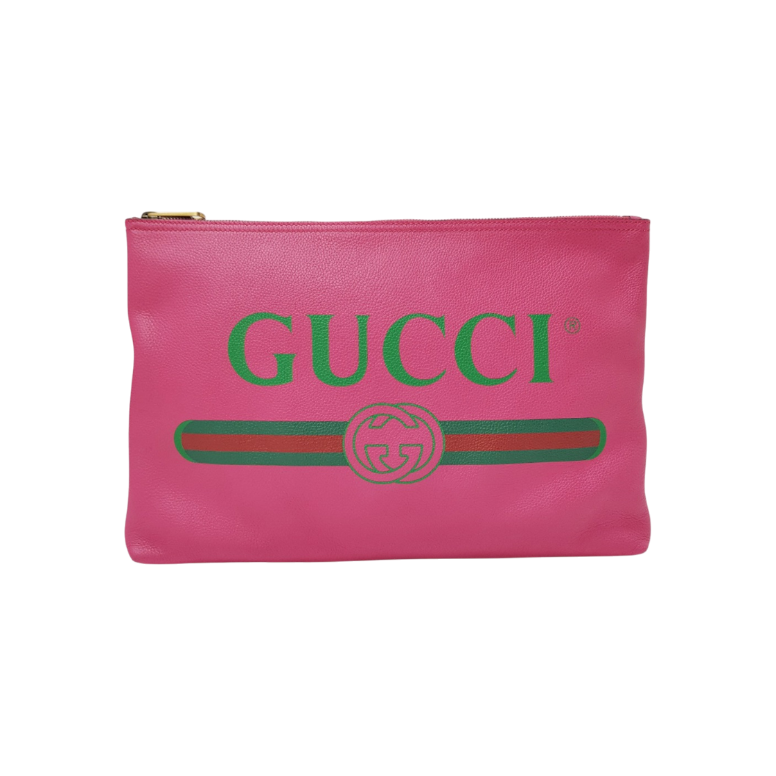 구찌 500984 핫핑크 레더 띠 로고 삼선 웹 스트라이프 클러치
