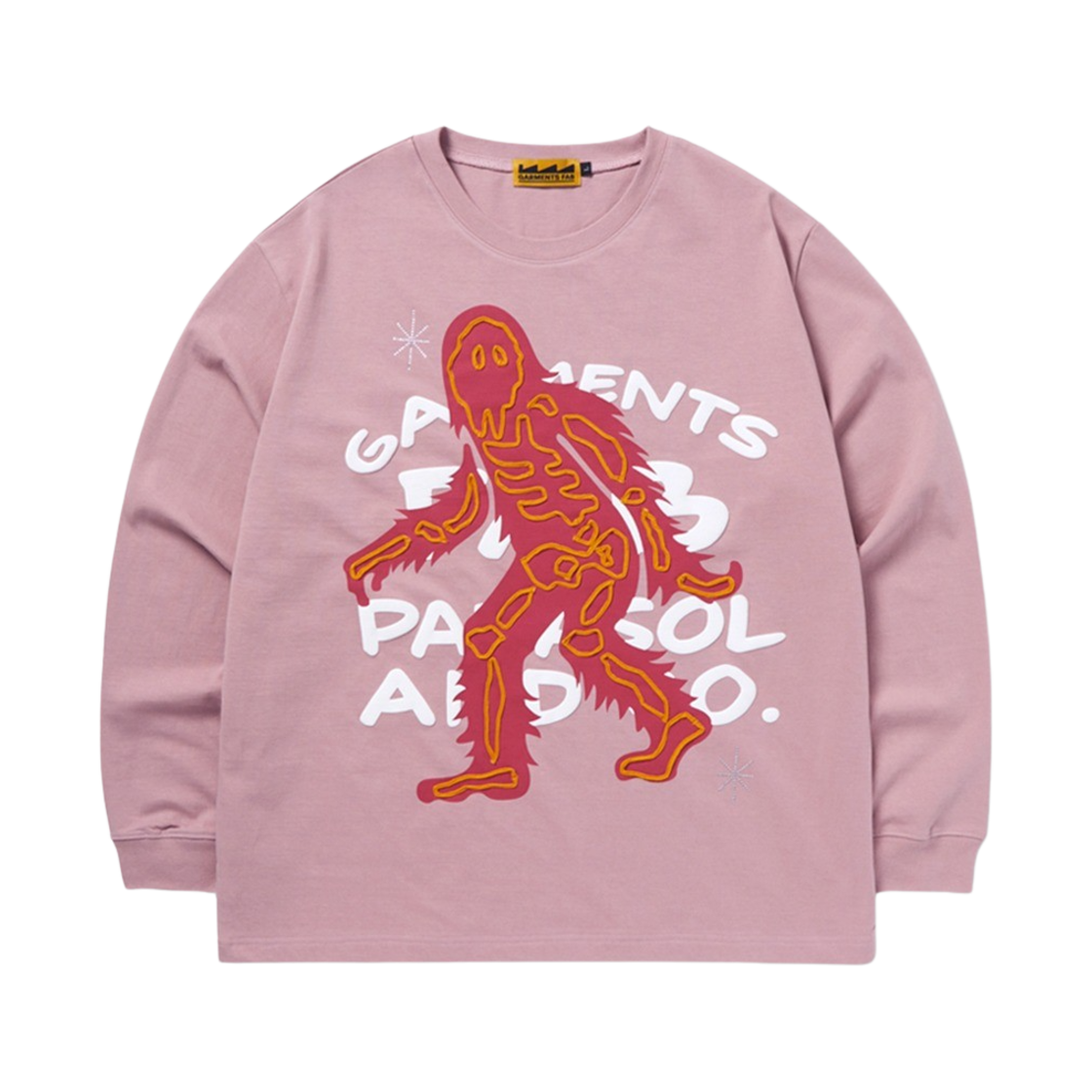 가먼츠팹 손 자수 해골 긴팔 티셔츠 다크 핑크