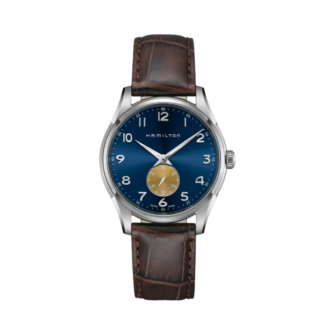 해밀턴 재즈마스터 씬라인 스몰 세컨드 쿼츠 40mm 스테인리스 스틸 카프 레더 블루