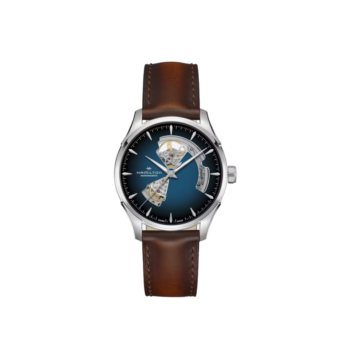 해밀턴 재즈마스터 오픈 하트 오토 40mm 스테인리스 스틸 카우 레더 블루