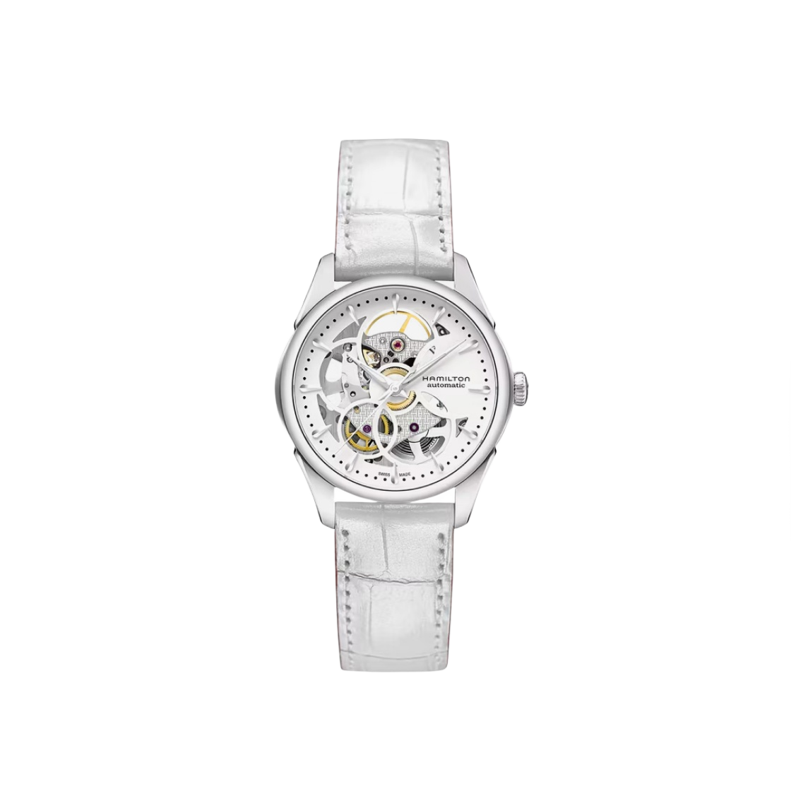 해밀턴 재즈마스터 스켈레톤 레이디 오토 36mm 스테인리스 스틸 카프 레더 화이트