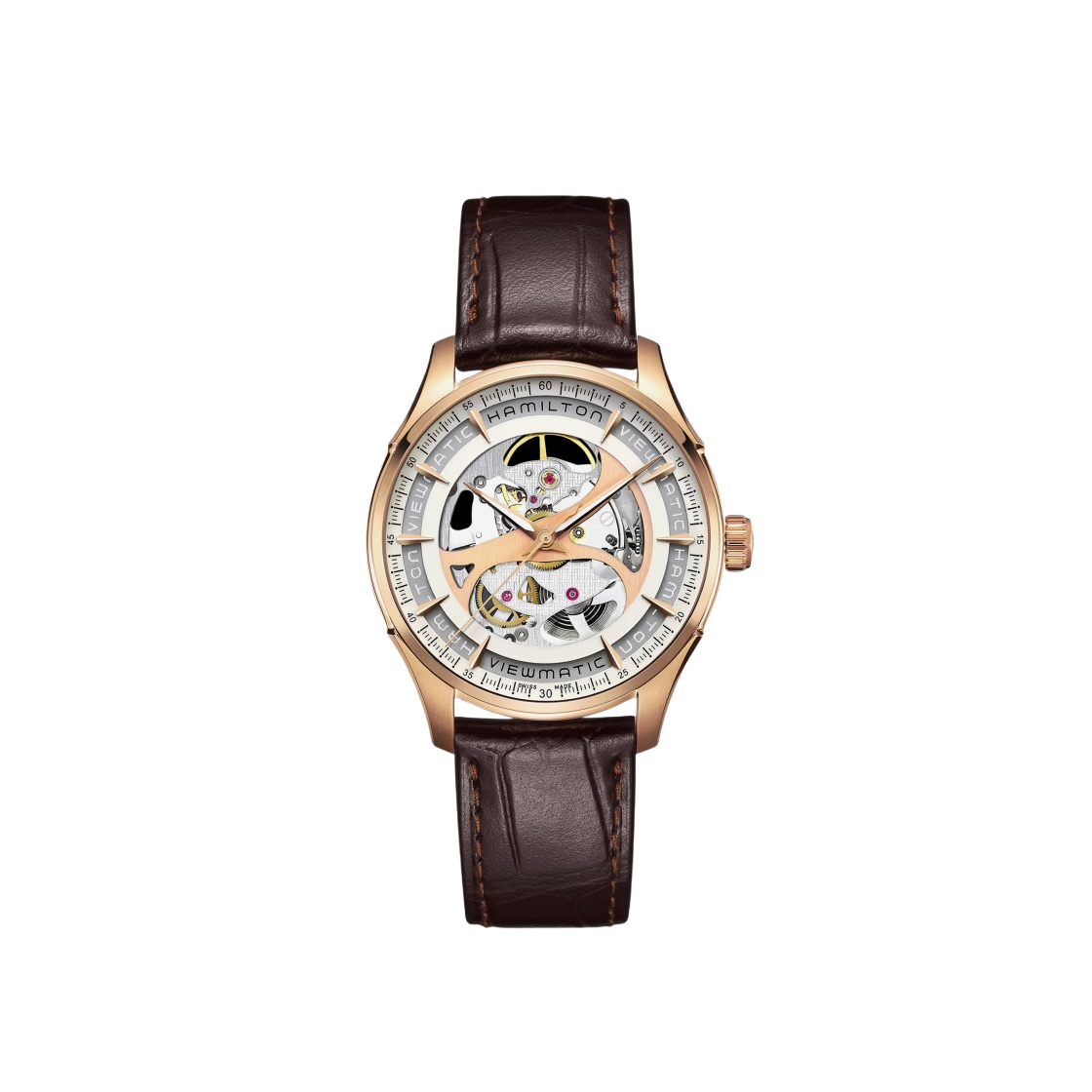 해밀턴 재즈마스터 뷰매틱 스켈레톤 젠트 오토 스테인리스 스틸 카프 레더 실버