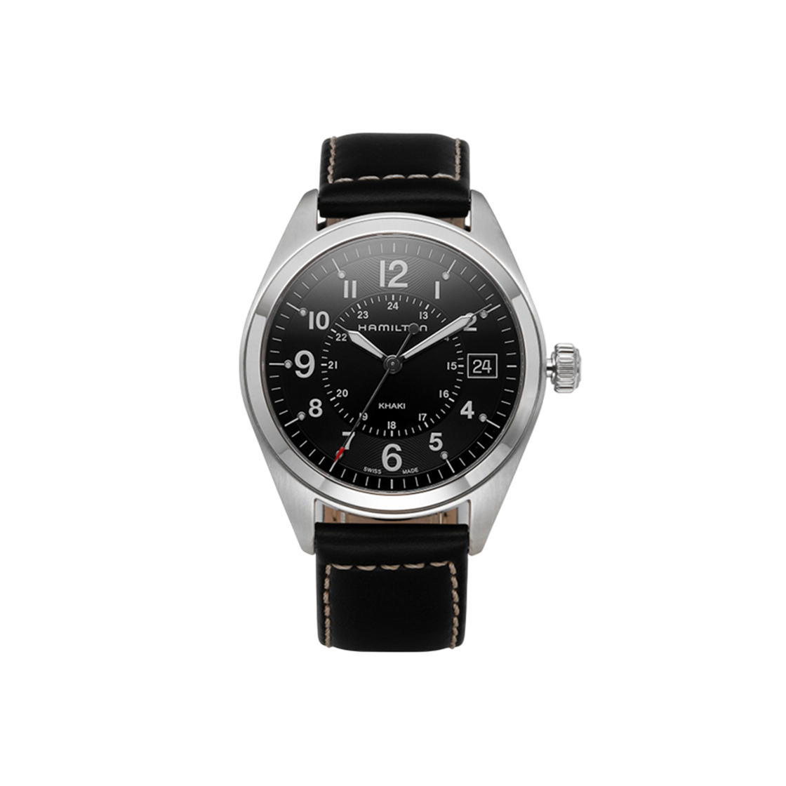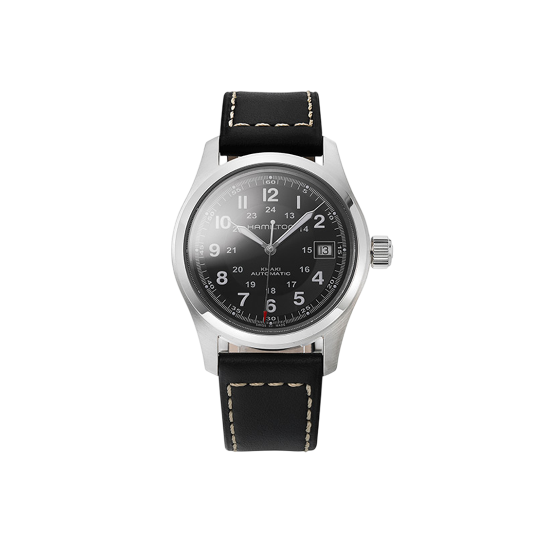 해밀턴 카키 필드 오토 42mm 스테인리스 스틸 카우 레더 블랙