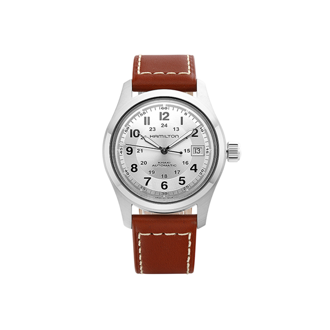 해밀턴 카키 필드 오토 38mm 스테인리스 스틸 카우 레더 실버