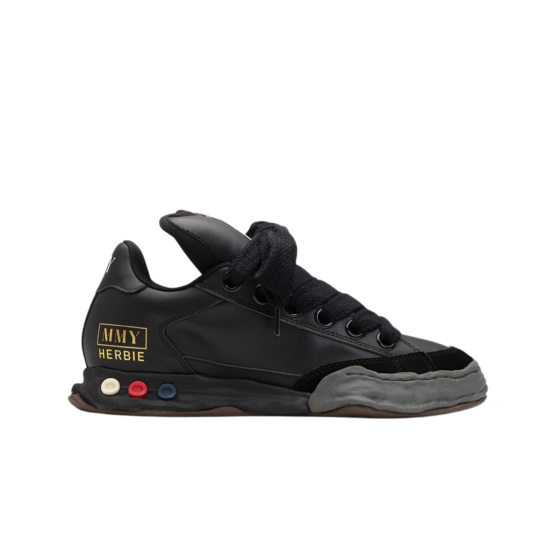 메종 미하라 야스히로 허비 퍼퍼 OG 솔 레더 로우탑 스니커즈 블랙 블랙