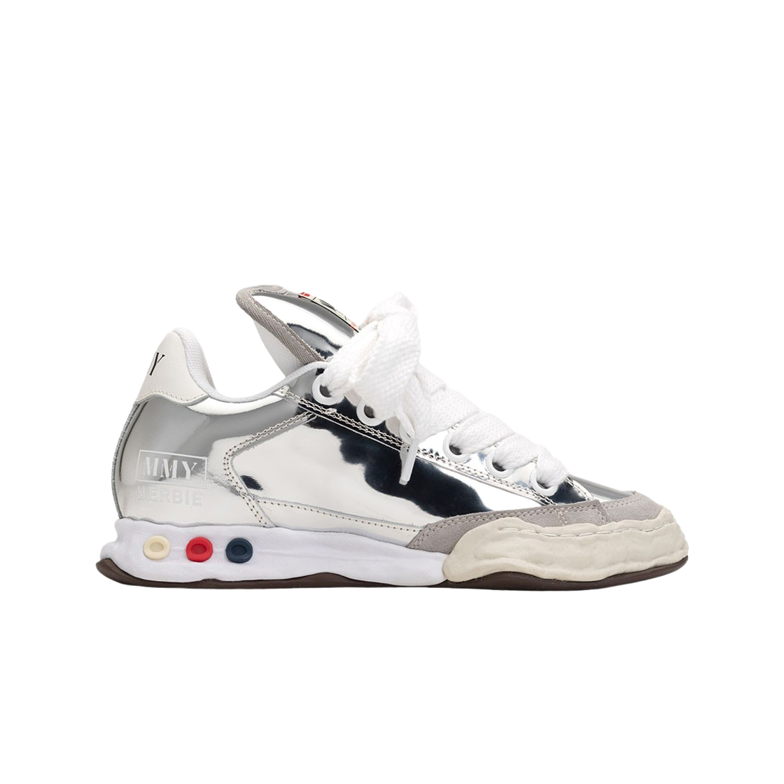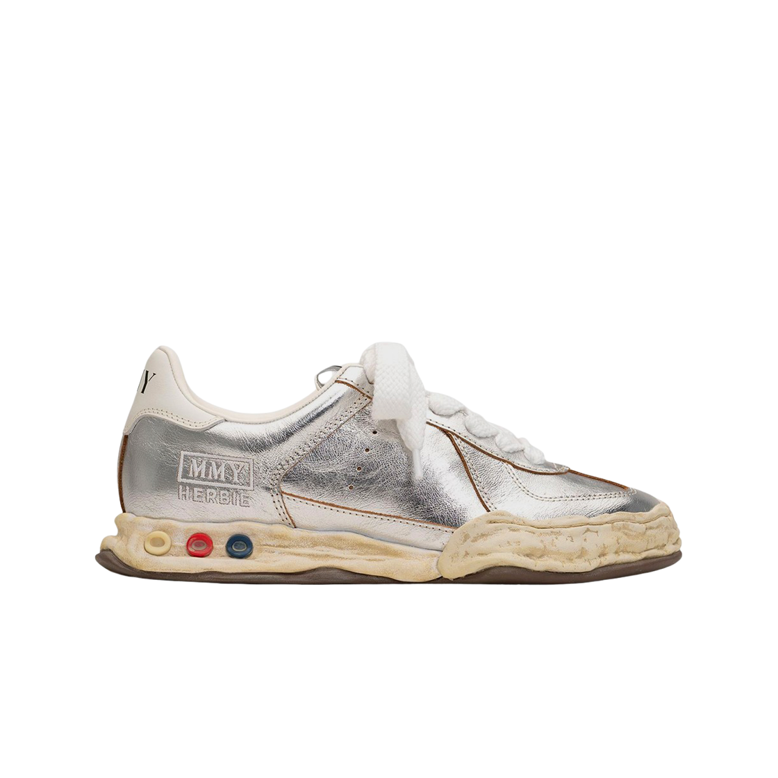 메종 미하라 야스히로 허비 OG 솔 링클드 레더 로우탑 스니커즈 실버