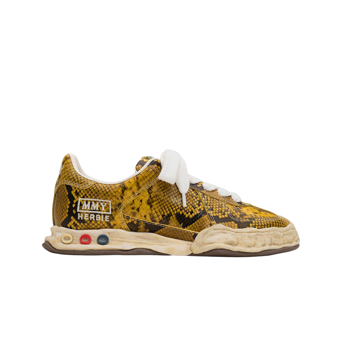 메종 미하라 야스히로 허비 OG 솔 파이톤 프린티드 레더 로우탑 스니커즈 옐로우
