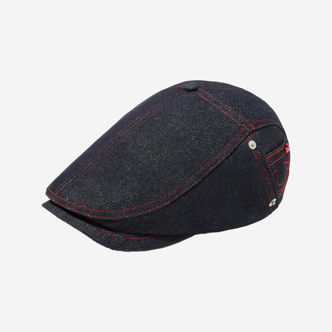 트루릴리젼 x 키르시 스티치 포인트 데님 헌팅캡 레드 스티치