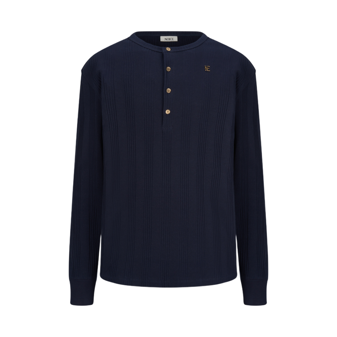 노이스 코튼 립 롱슬리브 헨리넥 네이비