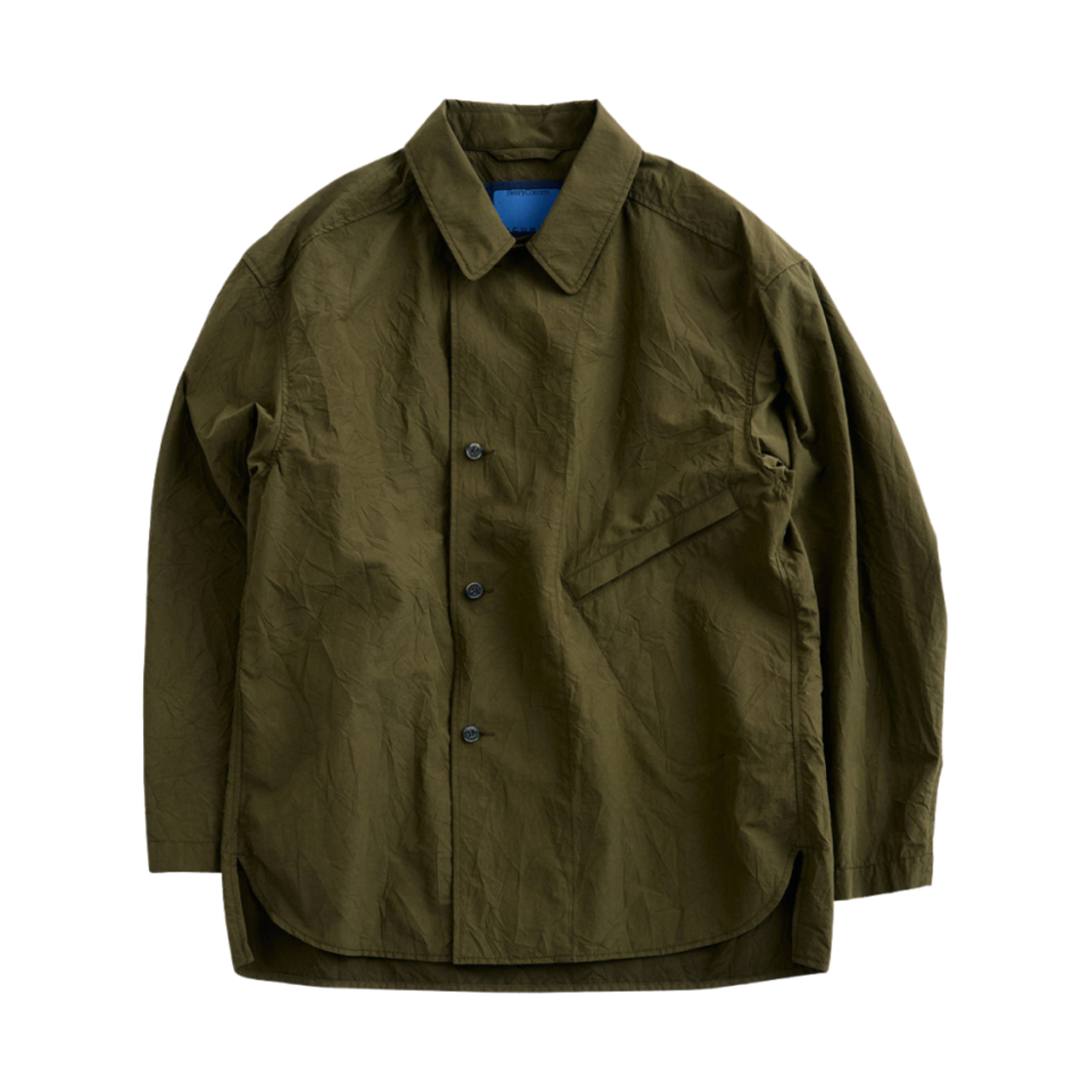 헨리 코튼 x 도큐먼트 플라이 피싱 클럽 왁스드 크링클드 셔팅 자켓 카키