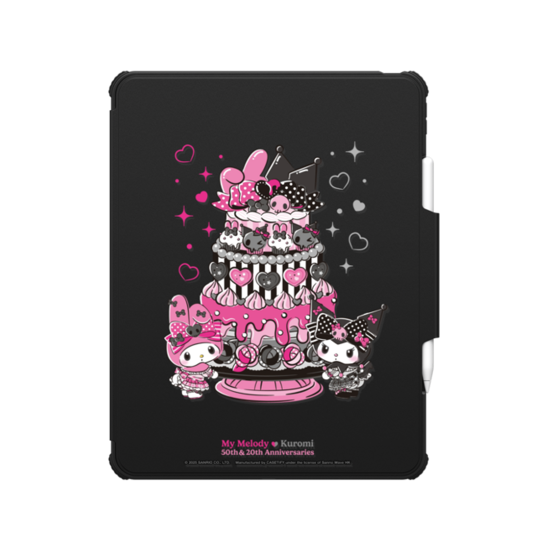 케이스티파이 x 산리오 마이 멜로디 & 쿠로미 아이패드 기념일 케이크 임팩티 폴리오 케이스 블랙 핑크