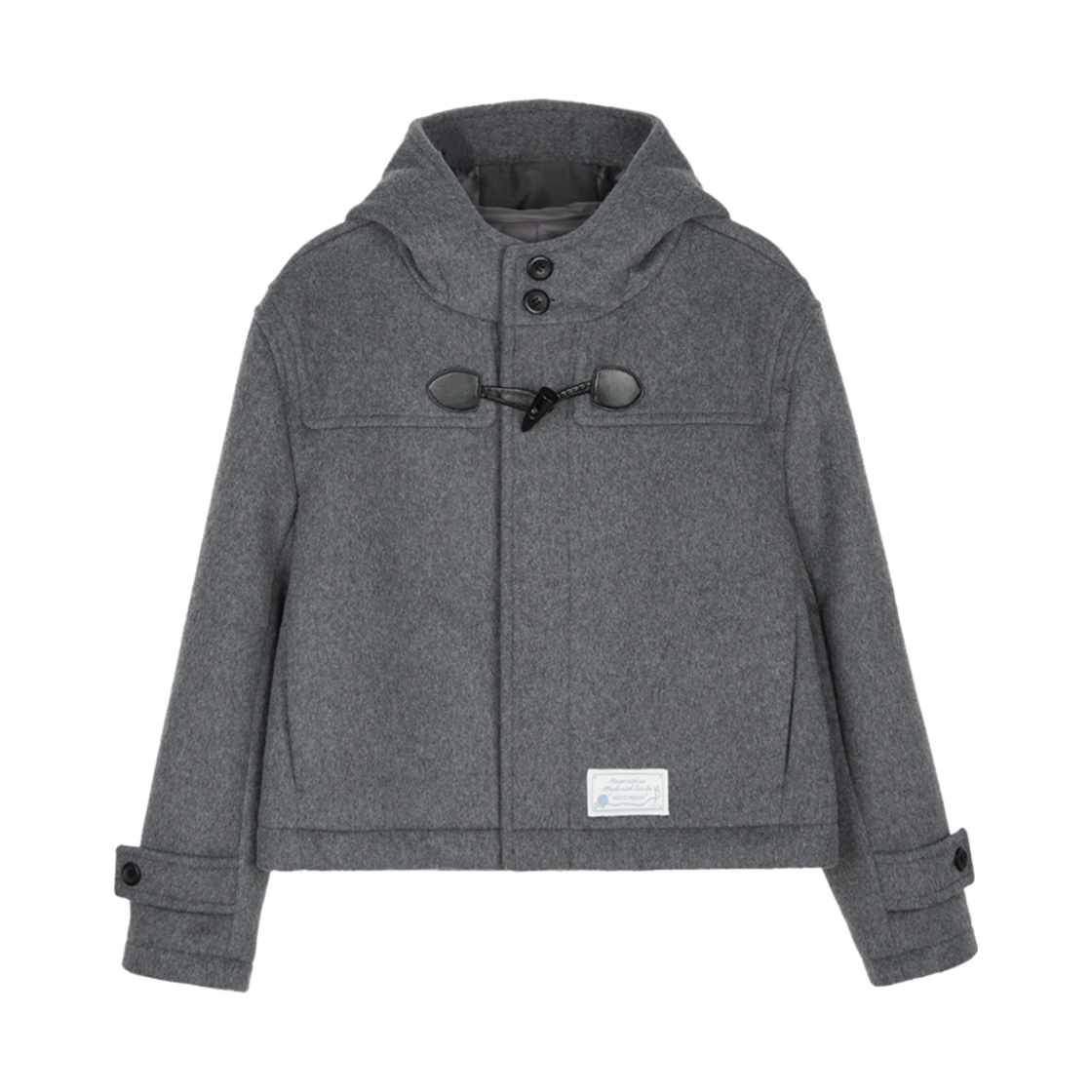 로씨로씨 크롭 후드 울 더플 코트 멜란지 그레이