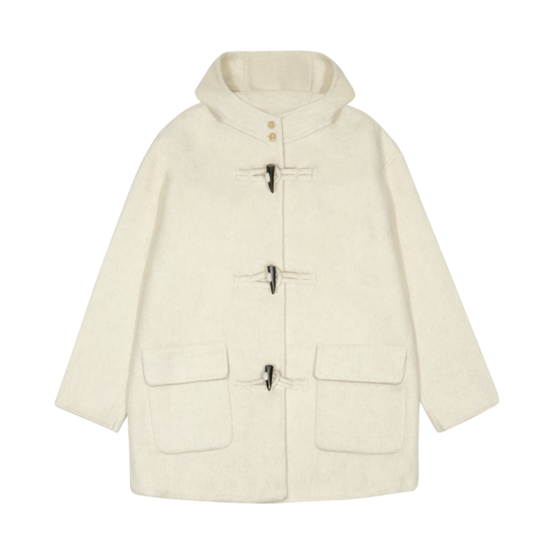 로씨로씨 크롭 후드 울 더플 코트 버터 베이지