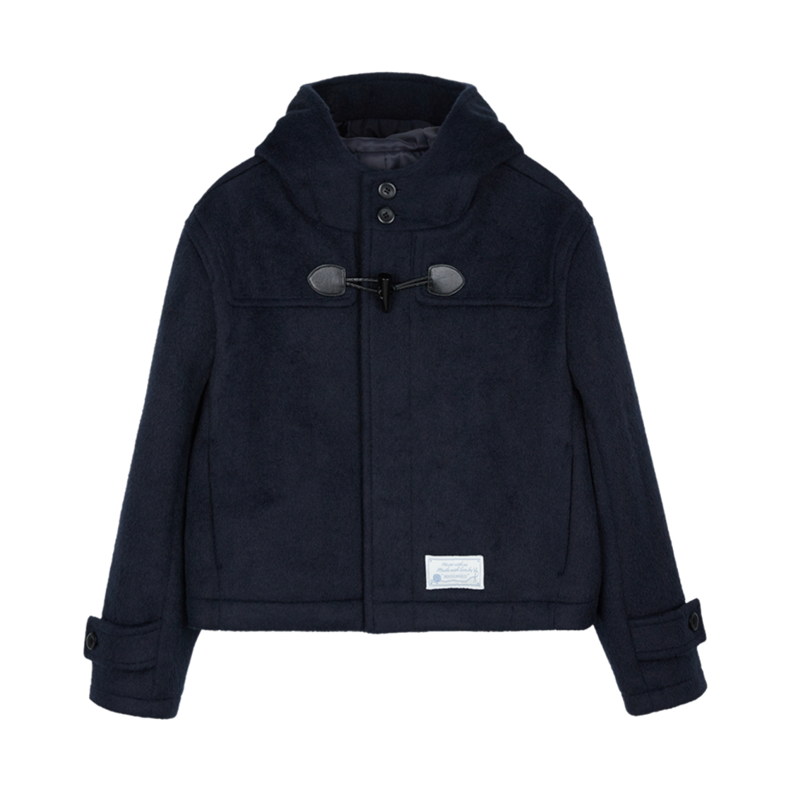 로씨로씨 크롭 후드 울 더플 코트 네이비