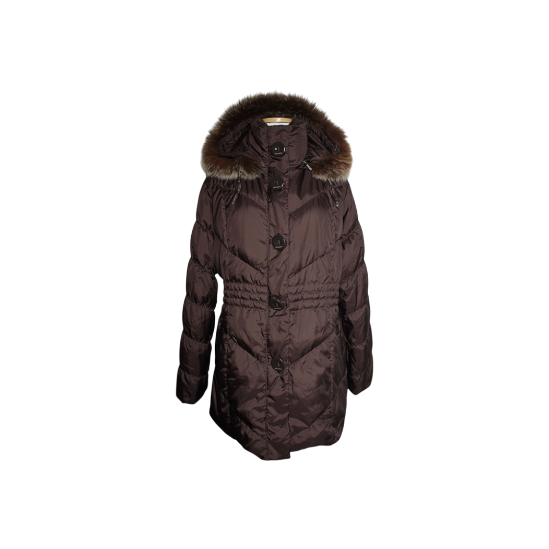 발망 딥브라운 폭스 퍼 후드 다운 패딩코트 55
