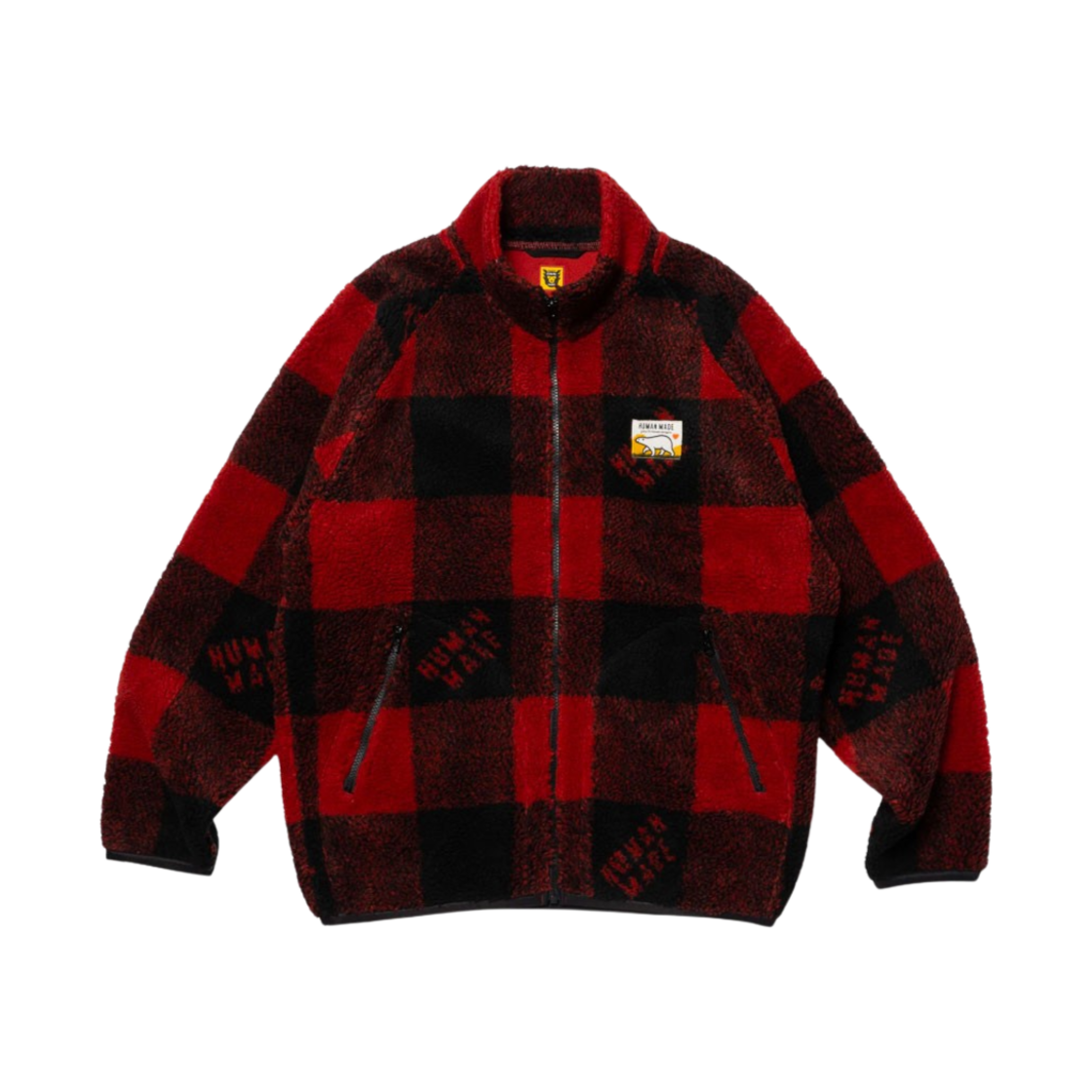 휴먼 메이드 체크 보아 플리스 자켓 레드